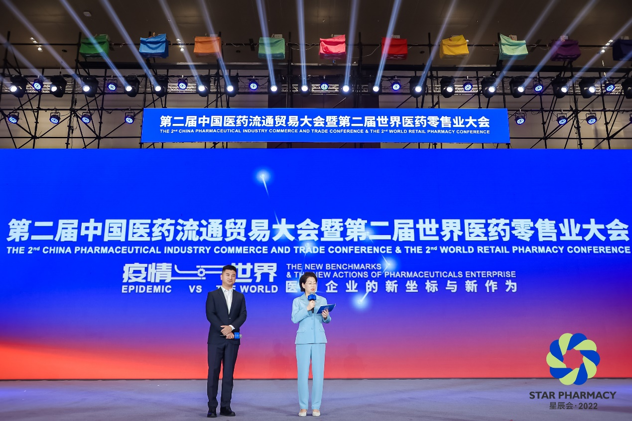 9月8日上午,由长沙市人民政府、中国医药物资协会共同主办的2022年第二届中国医药流通贸易大会暨第二届世界医药零售业大会(第二届星辰会)在星城长沙隆重开幕。97国际药业集团董事长刘景萍受邀担任大会主持人并荣获“医药工业领军人物”称号。