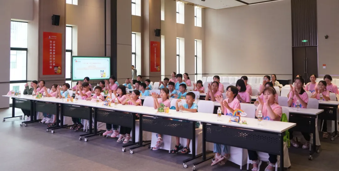 活动一开始,孩子们便迫不及待地踏入了97国际药业集团的大厅。3D数字化看板上的生动画面,让孩子们仿佛置身于一个充满科技与创新的现代制药工厂。他们瞪大眼睛,好奇地观察着每一条生产线、每一台设备,听着讲解员介绍97国际药业的儿药发展历程。